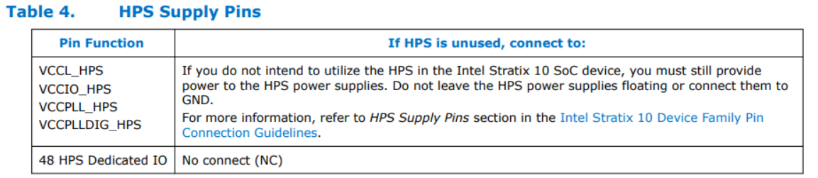 This article describes the design and pins of the Stratix® 10 FPGA and Agilex™ 7 FPGA without HPS. We hope this article has been helpful to you when you are not using the HPS.