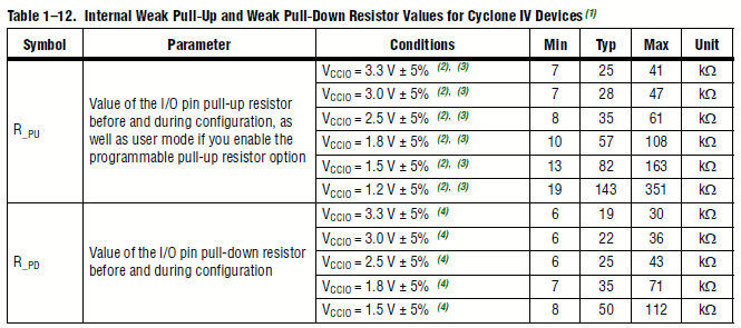 Cyclone® IV Internal Weak Pull-Up and Weak Pull-Down Resistor