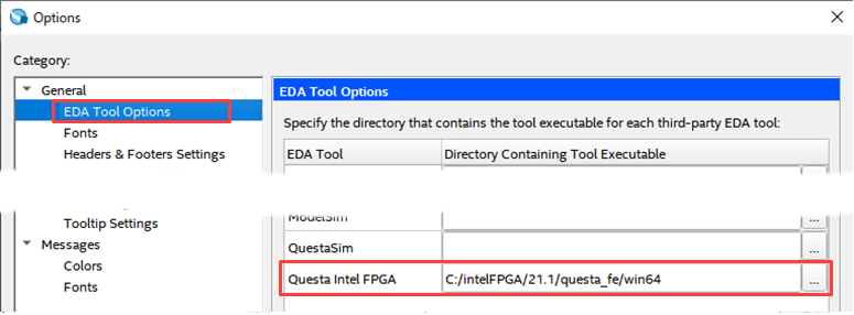 1. Click EDA Tool Options under Tools -> Options -> General in Quartus Prime.
