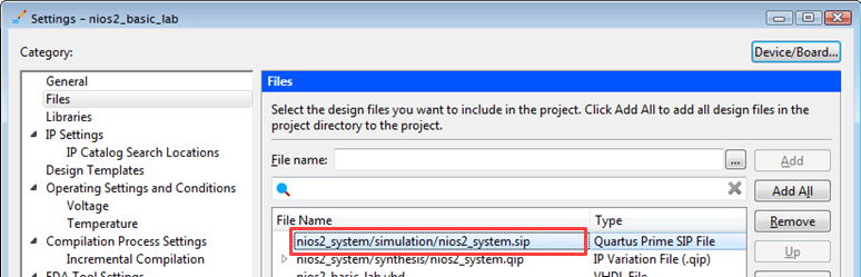 1. register all the designs required to compile Quartus Prime in the Quartus Prime project.
