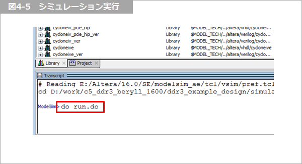 In the directory you have moved to, a DO file for running the simulation has been created. Type do run.do in the Transcript window of ModelSim® - Altera® FPGA Edition and press Enter to run the simulation.