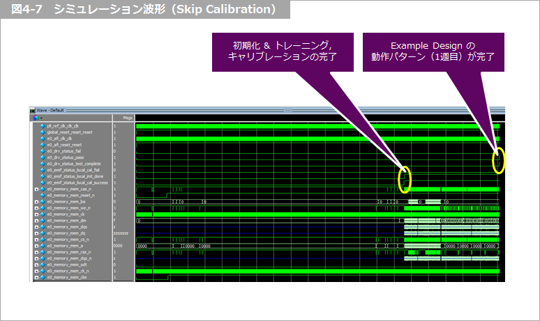Asserted High when the first cycle of the write/read memory test pattern by Example Design is complete. The simulation stops after one cycle, but the operation check pattern is repeated in the Example Design for operation check.