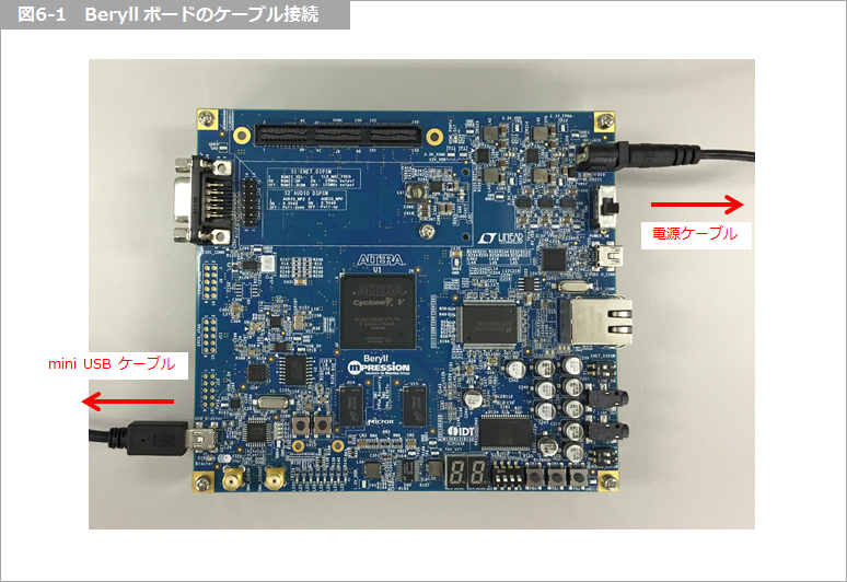 After compilation is complete, write the SOF file generated by the compilation to the Cyclone® V device. connect the Beryll board and PC with a USB cable (Beryll side: USB Mini-B) and turn on the power.