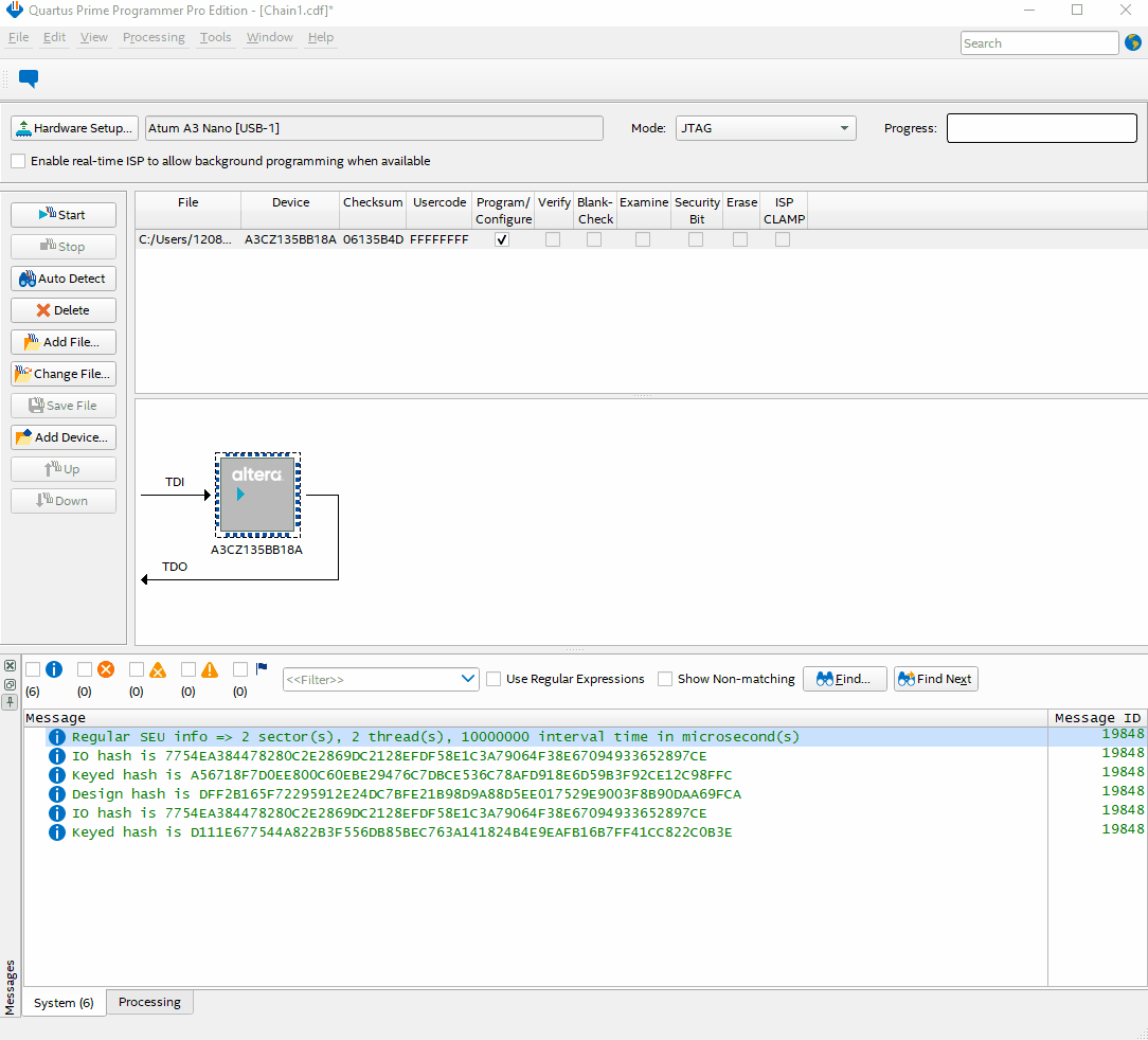 This section describes the steps from starting the Quartus Programmer to writing configuration data, which is basically the same for both JTAG and AS configurations, although the target files are different.