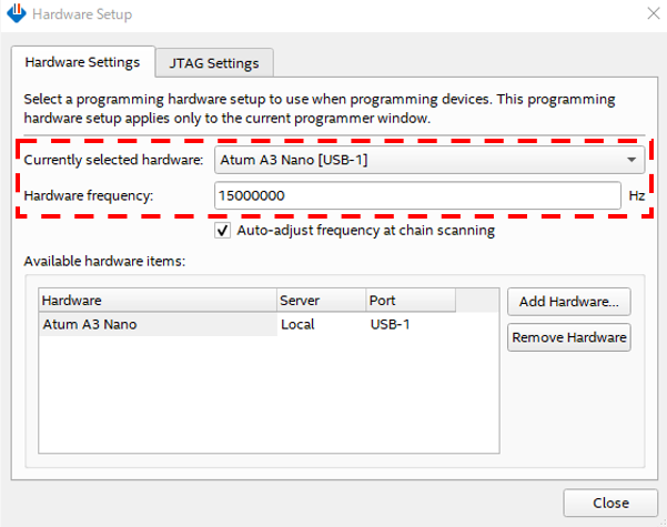 3) If the Hardware is successfully selected, the settings will be configured as shown in the figure below.