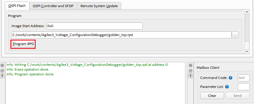 The Configuration Debutter Tool included in Quartus® Prime Pro can be used to access the QSPI Flash connected to Agilex™ 3 in ASx4 mode to read/write registers and data as needed. The Configuration Debugger Tool can be used to read/write registers and data as needed.