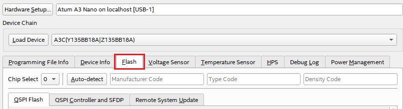 The Configuration Debugger has several tabs for different purposes. In this case, we will select the Flash tab to check QSPI Flash.