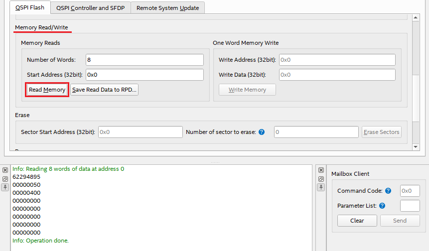 [Figure 8] Memory Read in the QSPI Flash tab within the Flash tab