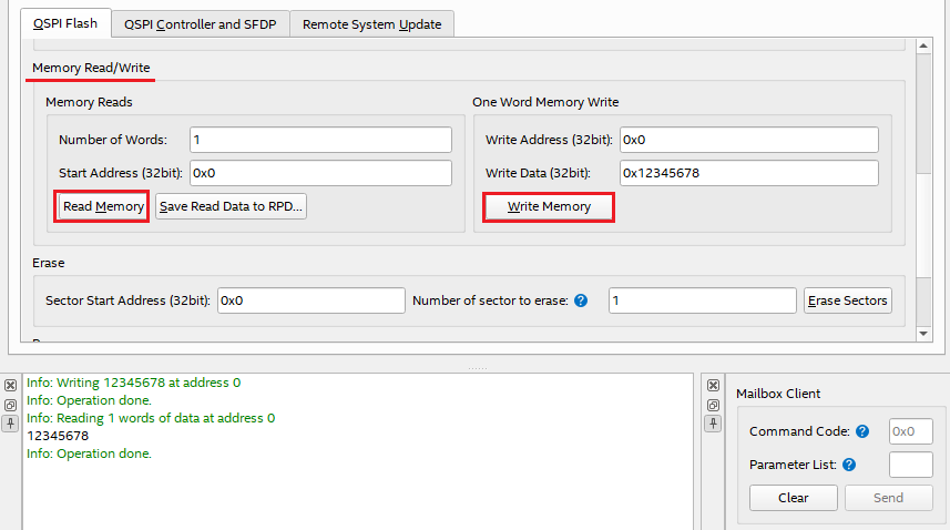 [Figure 9] Memory Write & Memory Read in the QSPI Flash tab in the Flash tab