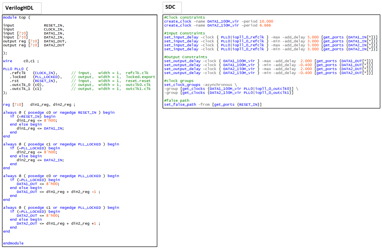 The following figure shows the system and RTL for timing analysis.