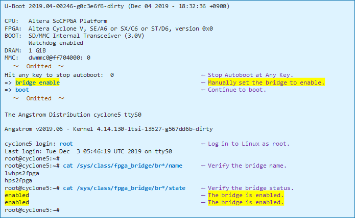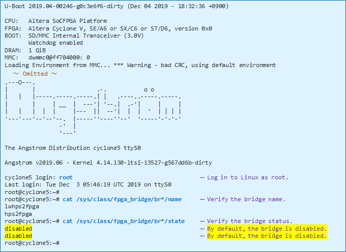 2-2. Check the initial status of the bridge on u-boot-socfpga_v2019.04