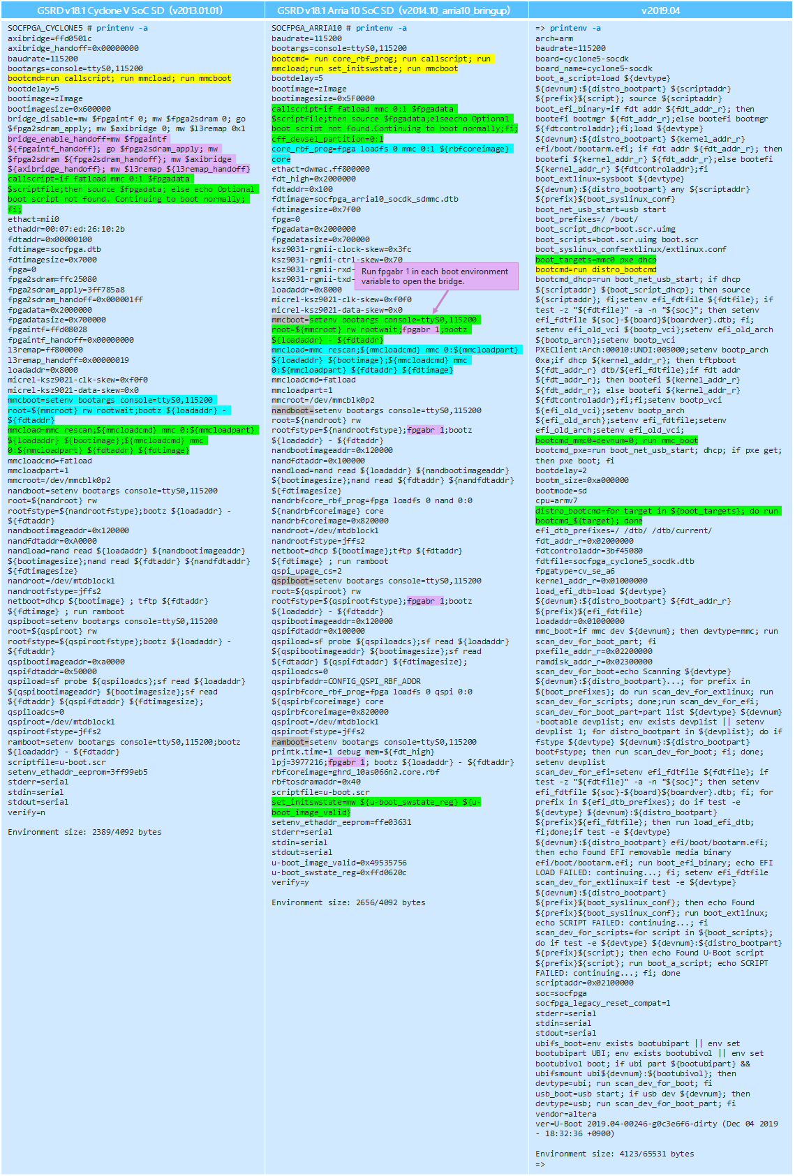 Table 3. Comparison of environment variables by u-boot-socfpga version