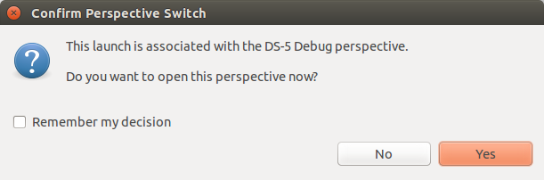 Click "Yes" when prompted to switch to the debug perspective (screen layout for debugging).