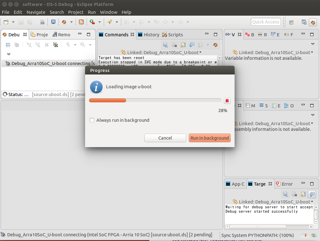 This article describes how to launch U-Boot from the Arm® Development Studio 5 Intel® SoC FPGA Edition (hereafter DS-5) debugger targeting an Arria® 10 SoC.