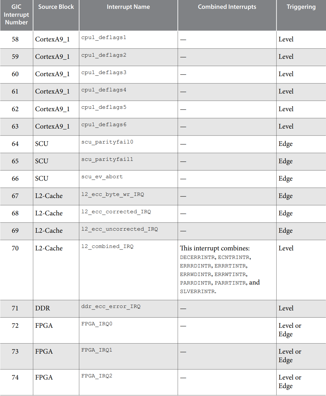 In the previous section, we introduced the GIC Interrupt Number for interrupts from the FPGA.
