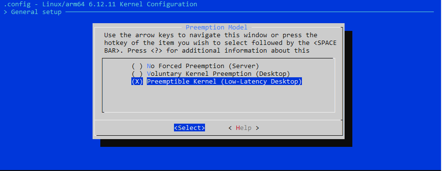 ヒント: 上記以外に PREEMPT_DYNAMIC というオプションも存在します。このオプションを選択した場合は、カーネル引数で起動時にプリエンプションのモード選択が可能です: