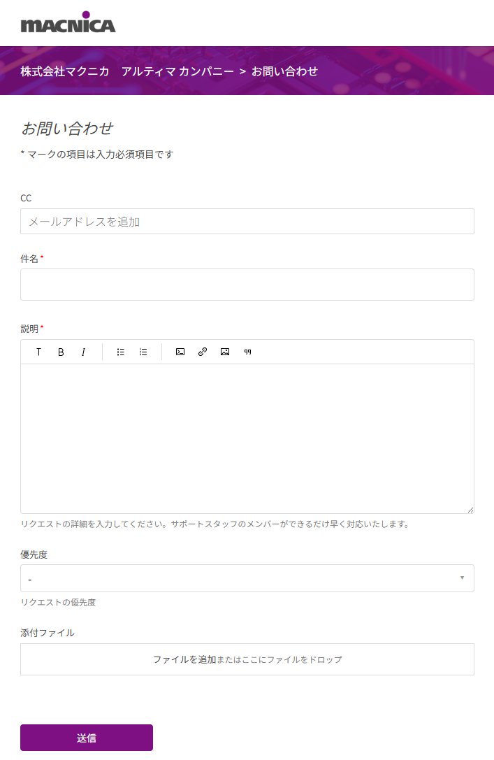 なお、メールにてお問い合わせを投稿いただく際に埋め込み画像形式で送信いただくことは可能ですが、システムの都合にて取り込みはプレーンテキスト形式でおこなわれるため埋め込み画像については添付ファイルとしてチケットに添付されてしまうことになります。あらかじめご了承ください。